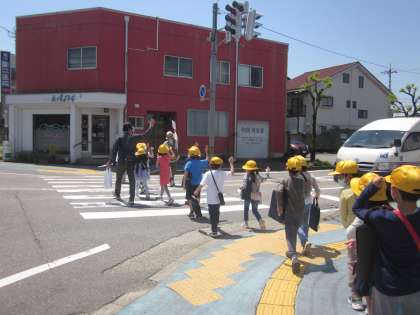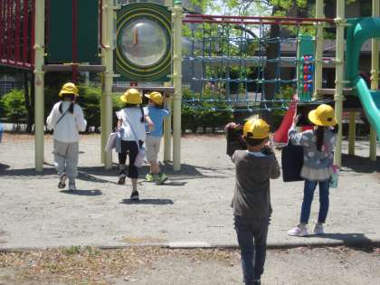 3回目の町探検では、それぞれが行きたいところに分かれ、コースごとに町探検を行いました。堀川に住む生き物に心をはたらかせているAさんは、太郎丸公園で虫を探し、飼い、カメラに収めようと考えています。