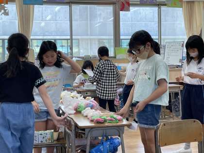 先日、子どもたちは3年生の頃から行っている、係活動での「お祭り」の4年生第一弾を開催しました。いくつかの出店があり、お店を開かない子どもたちはお客として楽しみます。今回は工作した食べ物の出店や占い、アスレチック等、子どもたちがそれぞれに考えたお店の中で、楽しく遊ぶことができました。