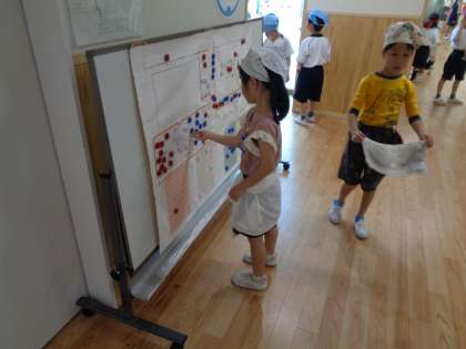 「朝活動ボード」で自分の整える場所を示し、取り組んでいます。