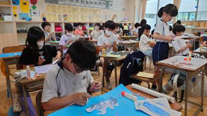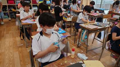 立体にする人、細かく切って飾り付けする人、いろいろな作品ができあがりました。