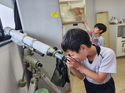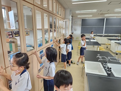 理科室での学習が少しずつ始まっていきます。今日は、理科室探検をしました。いろいろな道具に興味津々でした。