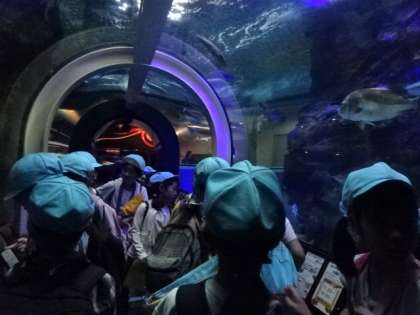 魚津水族館と、ミラージュランドに行ってきました。午前中は水族館でファミリー活動でオリエンテーリングをし、午後からは、ミラージュランドの乗り物に仲間と計画を立てた順で乗り物に乗って、公共施設の利用の仕方について学びました。子どもたちは、仲間と活動する中で、様々な気配りや、マナーの大切さを学んだようです。