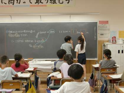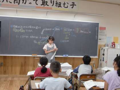 がんばっています(3年生) 公開日 2023/06/16 更新日 2023/06/16 3年生 毎日、運動会の練習に取り組みながら、学習も頑張る子どもたちです。道のりの長さやきょりのながさの問題をしっかり考えた後は、今日も仲間同士で答え合わせをしました。