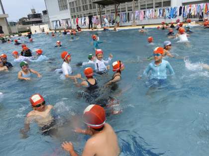 プール開き 公開日 2023/06/22 更新日 2023/06/22 4年生 プール開き集会がありました。担当教員から「自分や仲間の命を守るために、プール学習を真剣に取り組みましょう」という話を聞いた後、3年生と合同でプールに入りました。子どもたちは話で言われたことを守りながら楽しくプールに入ることができました。今後も天候をみながらプール学習を進めていきたいと思います。