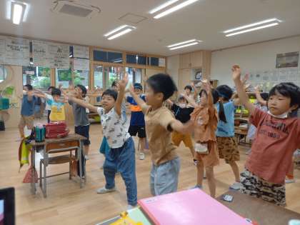 運動会が終わっても(2年生) 公開日 2023/06/22 更新日 2023/06/22 2年生 雨の日は、グラウンドで朝のトレーニングができません。 そのため、教室で筋トレを行っています。 すると、子どもたちから運動会の曲を流してほしいとの声が。 曲を流すと、楽しそうに踊りだす子どもたちでした。
