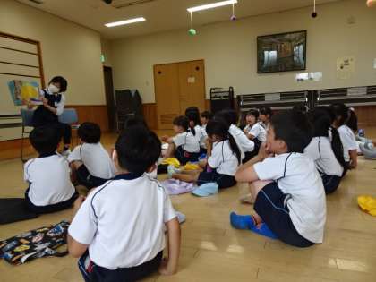 堀川分館に図書館訪問に行きました。富山市立図書館についてのお話を聞いた後、ブックトークや読み聞かせをきかせていただきました。子どもたちは、本の世界の面白さに浸ることができ、一層本に親しみをもったようです。最後に図書カードをもって実際に本を借りることができました。カードをなくさないことと、本を大切に扱うことを約束して帰りました。これからも様々な本に親しんでほしいです。