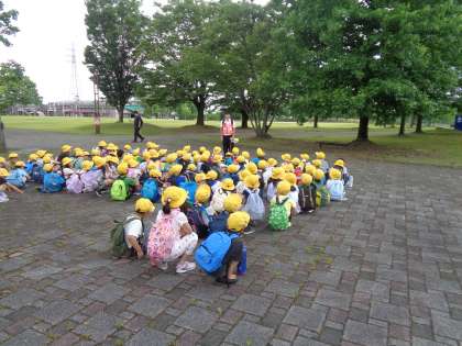 たくさん遊んだ子どもたちは、汗びっしょりになりました。