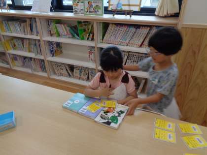 本、大好き(1年生) 公開日 2023/06/28 更新日 2023/06/28 1年生 子どもたちは、定期的に図書室を利用しています。 「おすすめ30」を中心に読んでいる子ども、自由読書を進める子ども、シリーズ物を続けて読む子どもなど目当てはそれぞれですが、読書に興味をもって過ごしています。
