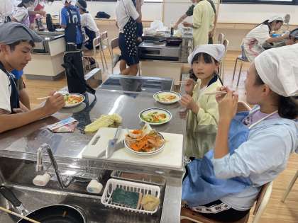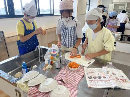 調理実習を進めています(6年生) 公開日 2023/06/28 更新日 2023/06/28 6年生 各クラスで「いろどりいため」の調理実習を進めています。子どもたちは、野菜の切り方によって、火の通り方や調味料の馴染み方が異なることに驚き、上手くいったところや改善したいところを今後の調理に活かしていきたいと話しました。
