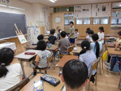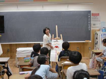 大型絵本の読み聞かせ会(3年生) 公開日 2023/07/03 更新日 2023/07/03 3年生 図書室から借りた大型絵本まつおかたつひでさん(作)「ぴょーん」の読み聞かせを聞きました。短いお話でしたが、お話の後の伝え合いでは様々な感想が伝えられました。