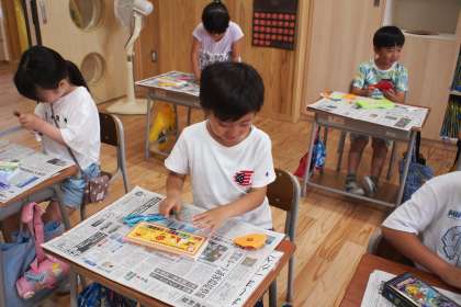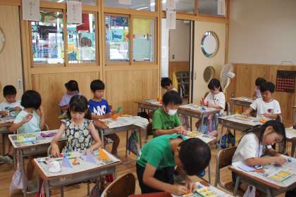 図工科「おってたてたら」の学習をしました 公開日 2023/07/10 更新日 2023/07/10 1年生 画用紙を折って立て、絵を描く学習をしました。自分が好きな動物や身近なものを作りました。紙がぴんと立つように工夫を凝らしながら楽しく制作した子どもたちです。