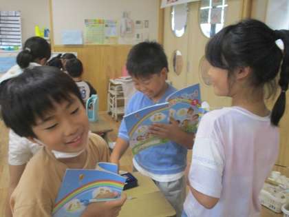 「I like〜」「I don⁷t like〜」の表現を用いて、好きな物や嫌いな物について相手に伝えることができました。