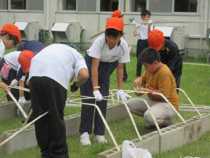 4年生は、19日(水)〜20日(木)に富山県呉羽青少年自然の家で集団宿泊学習を行いました。1日目には、舟づくりを行いました。途中、雨も降りましたが、自分たちで舟を作り上げる楽しさを感じていました。