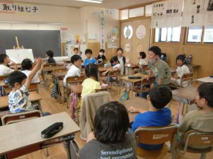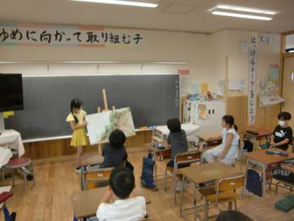 大型絵本の読み聞かせ会(3年生) 公開日 2023/07/24 更新日 2023/07/24 3年生 昨年の1学期に学習したレオ・レオニ—(作)谷川俊太郎(訳)「スイニー」と岸田衿子(作)長野博一(絵)「なにをたべてきたの?」と2冊の大型絵本の読み聞かせを聞きました。「スイミー」のお話を聞いて、教科書と絵本を比べて感じたことや美しい挿絵に気がついたことが伝え合いました。「なにをたべてきたの?」のお話でも挿絵の面白に気が付くなど、愉快なストーリの中を味わうことができました。