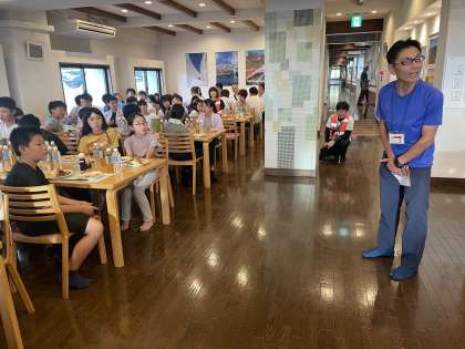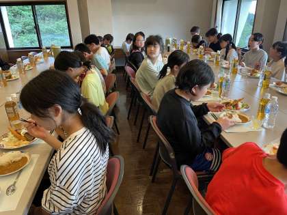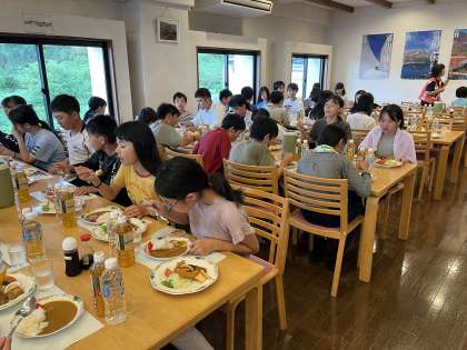 立山荘で夕食をいただきました。また、夕食時のガイドさんとの顔合わせでは、登山前夜のふさわしい過ごし方を教えていただき、食事の摂り方や就寝の仕方を気を付けようとする子どもの姿が見られました。