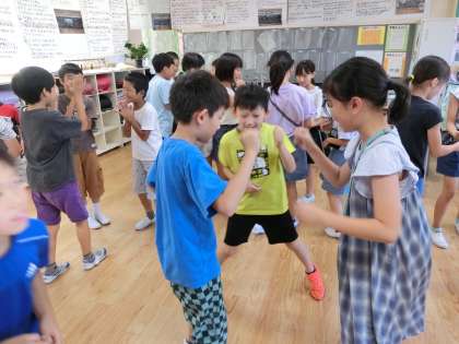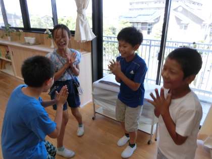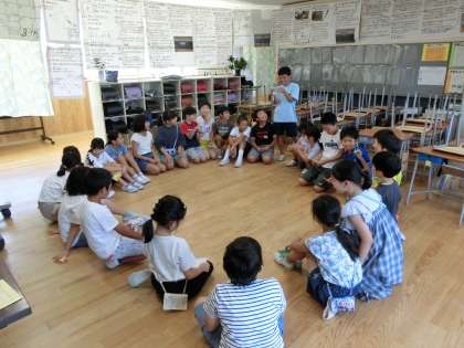 4組のみんなとオリジナルのじゃんけんをしたり夏休みの思い出を紹介したりしました。子どもたちは久しぶりに会った仲間と楽しく交流することができたようです。