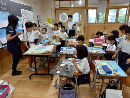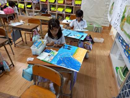 夏休みの思い出を得に表しています。 花火やプール、美味しかったもの… 楽しかったことが伝わってきます。