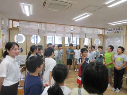 子どもたちが3週間一緒に過ごした教生先生に感謝を伝える集会を企画しました。教生先生との思い出を振り返るゲームや、歌と手紙のプレゼントなど、子どもたちは教生先生に喜んでほしいと願いながら心をこめて準備してきました。