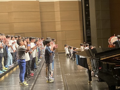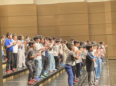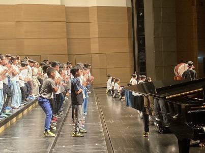 2曲目は「大地とともに 令和堀川Ver.」です。太鼓とボディーパーカッションの息がぴったり合うように頑張りました。