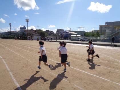 走る前に、「9秒台を目指したい」「同じ組で走る○○さんに勝ちたい」等、目当てを話していました。記録を計るのは7月以来です。どれくらい力が付いているのか楽しみです。