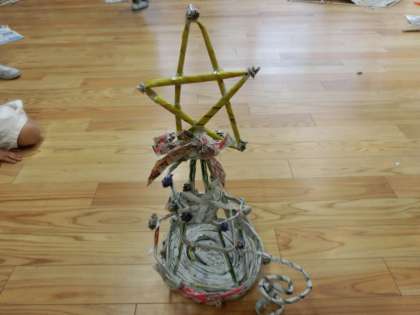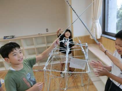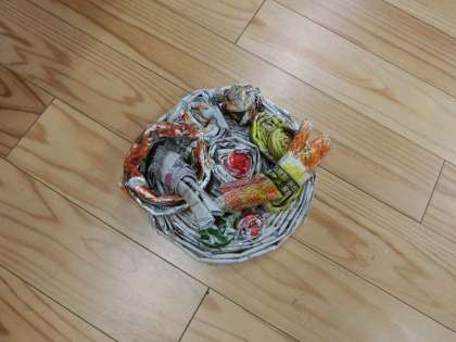 新聞紙を使って造形遊びの活動をしました。ファミリーと協力して楽しく活動することができました。