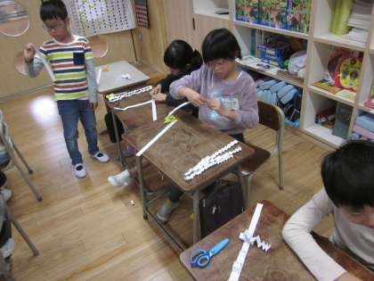 「ぼくは紙を何回も折って階段みたいにするよ」