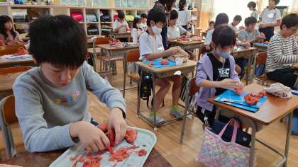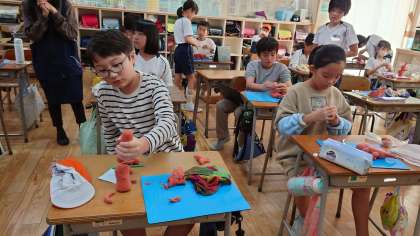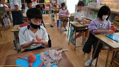 毎日乾かないように大切に育てた粘土を使って、一人ひとりが思い描く守り神を作っていました。