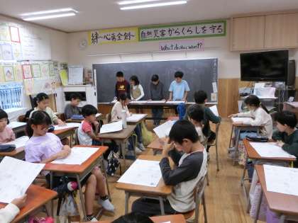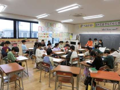 国語の授業で慣用句を学びました。ファミリーで2つ考え、発表し合いました。子どもたちは、「こんな慣用句もあるのか」「聞いたことあるな」など比較の仲間と話していました。