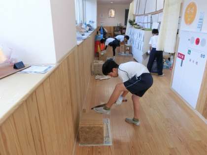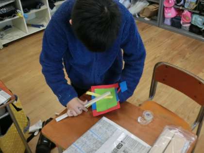 図画工作科の学習では、伝言板作りに励んでいます。画用紙でどのような伝言板を作るか考えた後、ノコギリで木を一生懸命切り、伝言板に必要な木片が組み合わせられるように準備をしています。どのような伝言板が仕上がるのか楽しみです。
