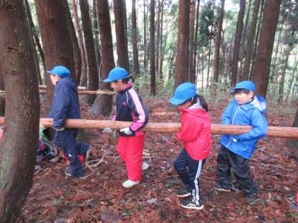 1日目にファミリー活動がうまくいかなかったと話したAさんは、「重い丸太や大きな板は、一人で運ぶことができないでしょ。みんなでかけ声をかけながら運んだり、相手が嫌な思いをしないように言葉を選んだりしたら、仲よく活動できた」と嬉しそうに話しました。続けてAさんは、「宿泊学習の私の目当ては『仲間と協力すること』だけど、1日目はうまくいかなかった。でも、仲間を気遣うことを意識したら、結果が大きく変わって嬉しかった」と話しました。