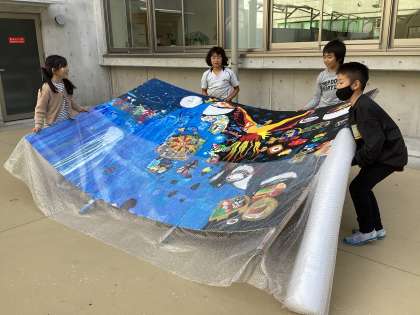 子どもたちの協力する姿に驚きました。担任が作品を取り外すためにネジを取ろうとすると、子どもから「自分たちが描いてきたものなので、自分たちでネジを外したい」と言ってきました。梱包したり、運んだりするときには自然と仕事や方法を見付けて取り組む子どももいました。