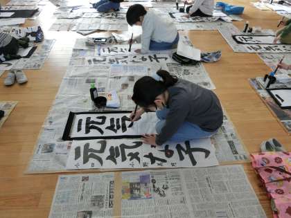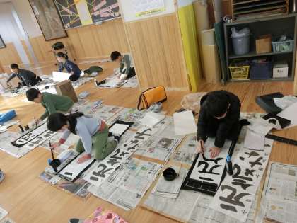 書き初めの練習が始まりました! 公開日 2023/12/04 更新日 2023/12/04 4年生 今年も書き初めの時期となりました。1年ぶりのだるま筆でしたが、去年の経験を生かし、力強く書くことができました。1枚目からとても上手で、これからの練習も楽しみな様子でした。どんどん頑張って練習をしていきたいと思います。
