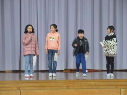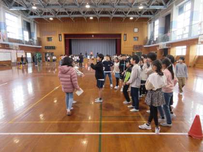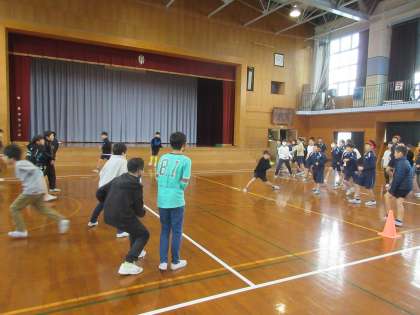 4名が中心となり、学年レクリエーションを行いました。学級対抗ドッジ−ビーや〇×クイズを楽しみながら、学年の仲を深めることができました。