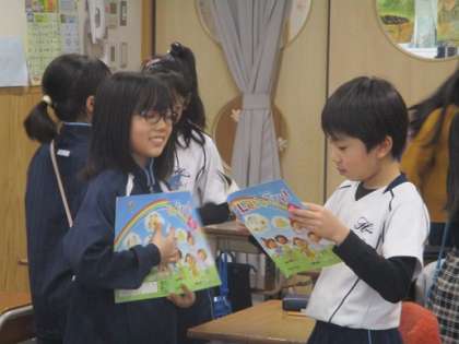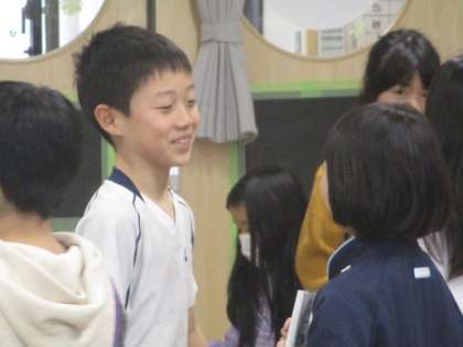 外国語活動「What's this?」 公開日 2024/01/25 更新日 2024/01/25 3年生 「What's this?」と言いながら相手にクイズを出題しているところです。楽しみながら外国語に親しんでいます。