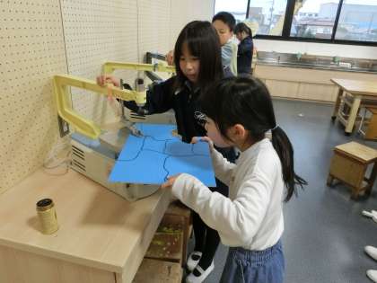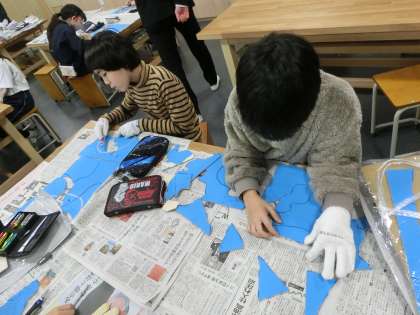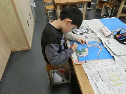 図画工作科では版画の作品作りが始まっています。自分が思い描く作品になるように糸鋸や彫刻刀を使いながら進めています。仕上がりが楽しみです。