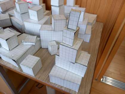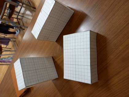 早く終わった人は、余った工作用紙でいろいろなサイズのはこを作りました。