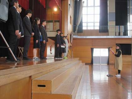 式では、新しい先生や職員の方々をお迎えし、代表児童が堀川小学校のよさや自分たちの頑張りについて自信をもって語りました。やる気に満ち溢れている6年生の活躍を期待しています。