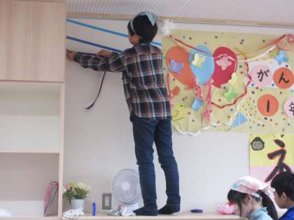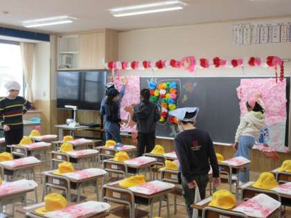 午後からは、入学式の準備を行いました。自分の役割に責任をもち、新1年生のために心を込めて取り組みました。