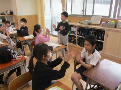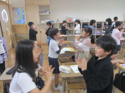 音楽科「小さな世界」 公開日 2024/04/19 更新日 2024/04/19 4年生 曲のリズムに乗りながら軽快に歌いました。途中、パートごとに分かれたり、動作を加えながら、楽しく歌に親しむことができました。