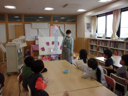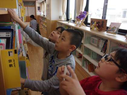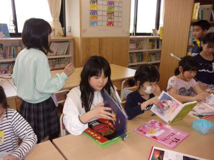 学校司書の先生から図書室の利用の仕方や本の検索の方法について、改めて教えてもらいました。ファミリー対抗の本探しレクリエーションもあり、子どもたちは楽しく本や図書室に親しむことができました。