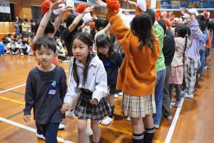 入学をお祝いする集会〜その2〜(1年生) 公開日 2024/04/26 更新日 2024/04/26 1年生 5年生が奏でる「ミッキーマウスマーチ」の音色に合わせて、3年生のつくる花のアーチをくぐって入場しました。 2年生から6年生まで、多くの仲間に祝福されていることを感じて笑顔満開の1年生の様子です。