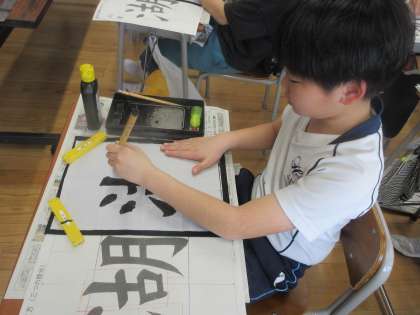書写の学習では、「湖」を練習しています。3つの部分の組み立てに気を付けながら、丁寧に書くことができました。