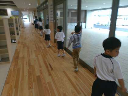 体育館への移動も、6年生を先頭に、一列に並んで歩きました。