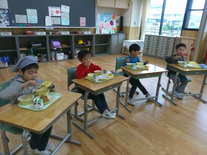 なかよし給食(なかよし級) 公開日 2024/05/02 更新日 2024/05/02 特別支援 今年度初めてのなかよし給食を行いました。 今日の献立は、大好きなカレーライス、福神和え、、フルーツヨーグルトでした。 みんなでおいしくいただきました。 今年も定期的になかよし給食の日を設け、交流を深めていきたいと思います。