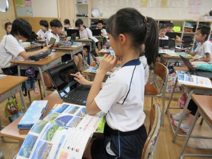 日本の国土の様子(5年生) 公開日 2024/05/02 更新日 2024/05/02 5年生 社会科では、日本の国土の様子について学習しています。日本は狭いですが、山に囲まれた土地や平野が広がる土地等、様々な特徴があります。Google Earthを使って日本の国土の様子の違いを確かめました。富山県とは異なる土地の様子に子どもたちは興味深く見ていました。