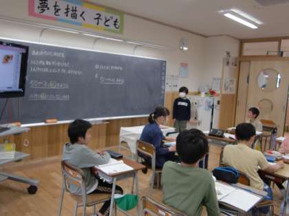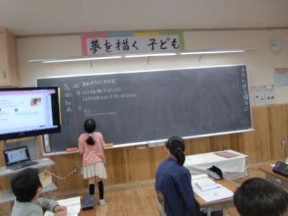 算数の学習にて(4年生) 公開日 2024/05/08 更新日 2024/05/08 4年生 大型連休が明けて、いつものくらしがスタートしました。算数科の学習では「わり算のしかたを考えよう」の学習に取り組んでいます。今日は、わり算の計算で答えを出し、次に、けん算で答えを確かめました。正しい答えを出そうといつも、丁寧に計算問題に取り組む皆さんです。
