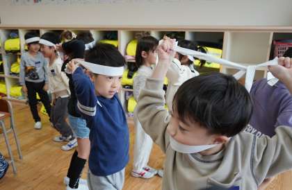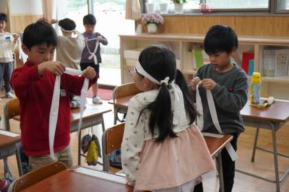 はちまきをつけてやる気元気〜その2〜(1年生) 公開日 2024/05/10 更新日 2024/05/10 1年生 「うまく縛れないよ」と困っている仲間には、「私は得意だから手伝うよ」と言って、お互いに助け合い、全員がはちまきを身につけることができました。 得意を生かして自然と助け合える、すてきな1年生です。