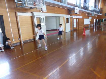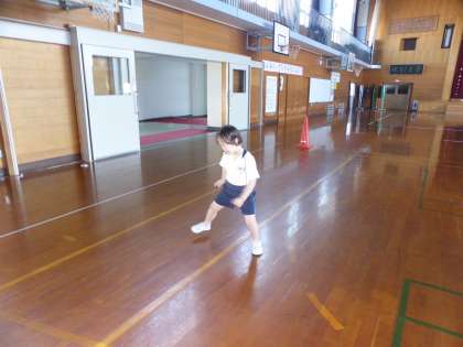 体力測定(なかよし級) 公開日 2024/05/15 更新日 2024/05/15 特別支援 シャトルラン20メートル走に続いて 反復横跳び(20秒間)に取り組みました サイドステップの練習を何回かしてから測定しました 仲間と向かい合って測定すると リズムよく跳ぶことができました 「練習したら もっと 回数が増えそうだね」 と 第2回反復横跳び測定が計画されていました
