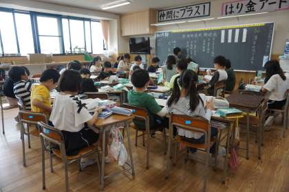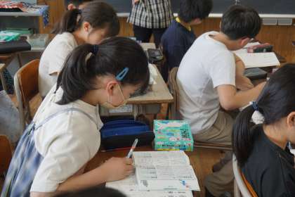 国語科「漢字の成り立ち」の学習では、週に一回国語科の時間に来てくださる米田先生と共に、漢字がどうつくられてきたのかなどを漢字辞典を使って調べ、仲間と確認し合いました。懸命に辞典を開く子どもたちの姿がありました。