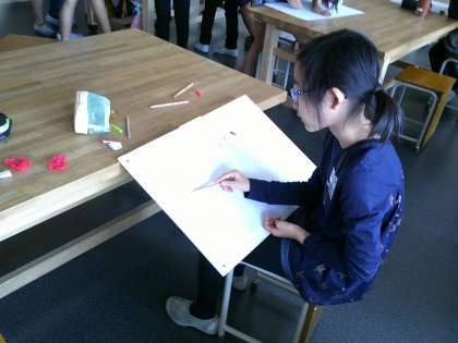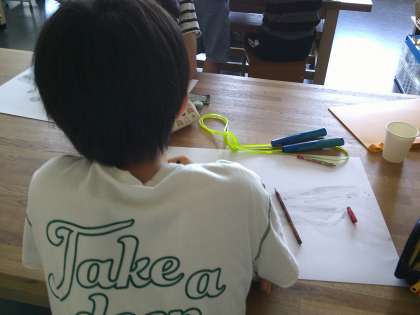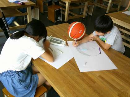 自分の「大切なもの」を描いています。「影が一番濃い黒で、次に濃いのが内側」「光が当たるところの明るさは、どうやって表したらいいかな」と色の濃淡を考える子どもたちです。